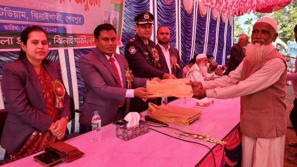 শেরপুরের ঝিনাইগাতীতে জাতির শ্রেষ্ঠ সন্তান বীর মুক্তিযোদ্ধা ও শহীদ পরিবারের সদস্যদের সংবর্ধনা দেওয়া হয়েছে। মঙ্গলবার (১৬ ডিসেম্বর) দুপুরে উপজেলা প্রশাসনের পক্ষ থেকে উপজেলা স্টেডিয়ামে এই সংবর্ধনা দেওয়া হয়। অনুষ্ঠানের শুরুতে