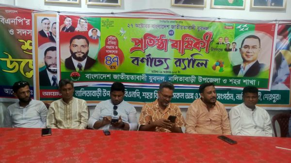 নানা আয়োজনে শেরপুরের নালিতাবাড়ীতে বাংলাদেশ জাতীয়তাবাদী যুবদল এর ৪৭ তম প্রতিষ্ঠাবার্ষিকী পালিত হয়েছে। ২৮ অক্টোবর রোববার এ উপলক্ষে বর্ণাঢ্য মিছিল ও আলোচনা সভার আয়োজন করা হয়। নালিতাবাড়ী উপজেলা যুবদলের সিনিয়র