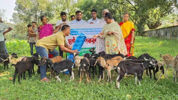 শেরপুর জেলার ঝিনাইগাতী উপজেলায় সমতল ভূমিতে বসবাসরত অনগ্রসর ক্ষুদ্র – নৃগোষ্ঠীর আর্থ সামাজিক ও জীবন মানোন্নয়নে সমন্বিত প্রাণিসম্পদ উন্নয়ন প্রকল্পের আওতায় ৭৫ জন সুফলভোগীকে দুইটি করে ছাগল ও উপকরণ বিতরণ