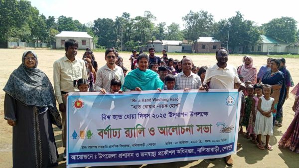 “হাত ধোয়ার নায়ক হোন” স্লোগানে শেরপুরের নালিতাবাড়ীতে বিশ্ব হাত ধোয়া দিবস পালিত হয়েছে। ১৫ অক্টোবর বুধবার তারাগঞ্জ সরকারি প্রাথমিক বিদ্যালয় প্রাঙ্গণে উপজেলা প্রশাসন ও জনস্বাস্থ্য প্রকৌশল অধিদপ্তর যৌথভাবে দিবসটি উপলক্ষে