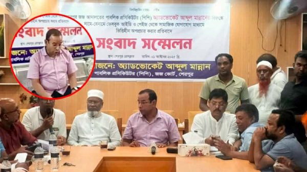 শেরপুরে আওয়ামী লীগ নেতা অ্যাড. চন্দন কুমার পালের জামিনকে ঘিরে ফেসবুকে অপপ্রচারের প্রতিবাদে সংবাদ সম্মেলন করেছেন রাষ্ট্রপক্ষের পাবলিক প্রসিকিউটর (পিপি) ও শহর বিএনপির আহ্বায়ক অ্যাড. আব্দুল মান্নান। বুধবার (১ অক্টোবর)