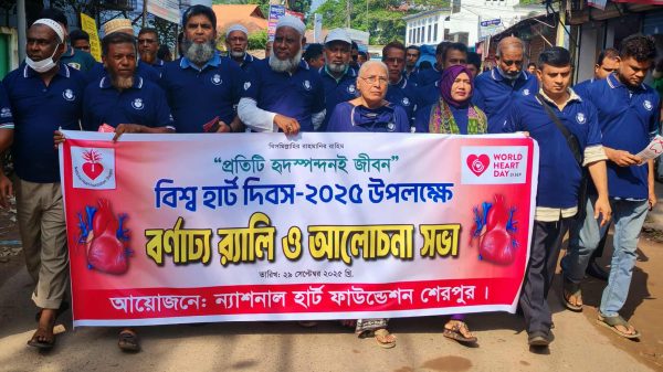‘প্রতিটি স্পন্দই জীবন’ এ প্রতিপাদ্যকে সামনে রেখে শেরপুরে বিশ্ব হার্ট দিবস উদযাপন উপলক্ষে বর্ণাঢ্য র্যালি ও আলোচনা সভা অনুষ্ঠিত হয়েছে। সোমবার (২৯ সেপ্টেম্বর) সকালে শেরপুর ন্যাশনাল হার্ট ফাউন্ডেশনের আয়োজনে দিবসটি