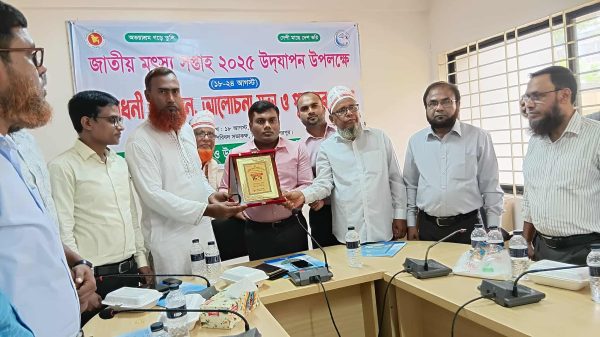 শেরপুরের ঝিনাইগাতীতে জাতীয় মৎস্য সপ্তাহের উদ্বোধন উপলক্ষে উপজেলার ৩ জন সফল মৎস্য খামারীকে বিশেষ সম্মাননা স্মারক প্রদান করা হয়েছে। সোমবার (১৮ আগস্ট) দুপুর ১২টায় উপজেলা পরিষদ হলরুমে অনুষ্ঠানে ওইসব সম্মাননা