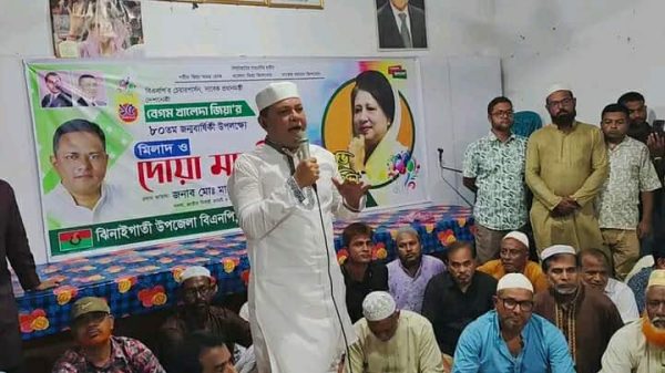 সাবেক প্রধানমন্ত্রী ও বিএনপি চেয়ারপার্সন বেগম খালেদা জিয়ার ৮০তম জন্মবার্ষিকী উপলক্ষে শেরপুরের ঝিনাইগাতী উপজেলা বিএনপির দলীয় কার্যালয়ে দোয়া মাহফিল অনুষ্ঠিত হয়েছে। শুক্রবার বাদ আসর দলীয় কার্যালয়ে বিএনপির কেন্দ্রীয় নির্বাহী কমিটির